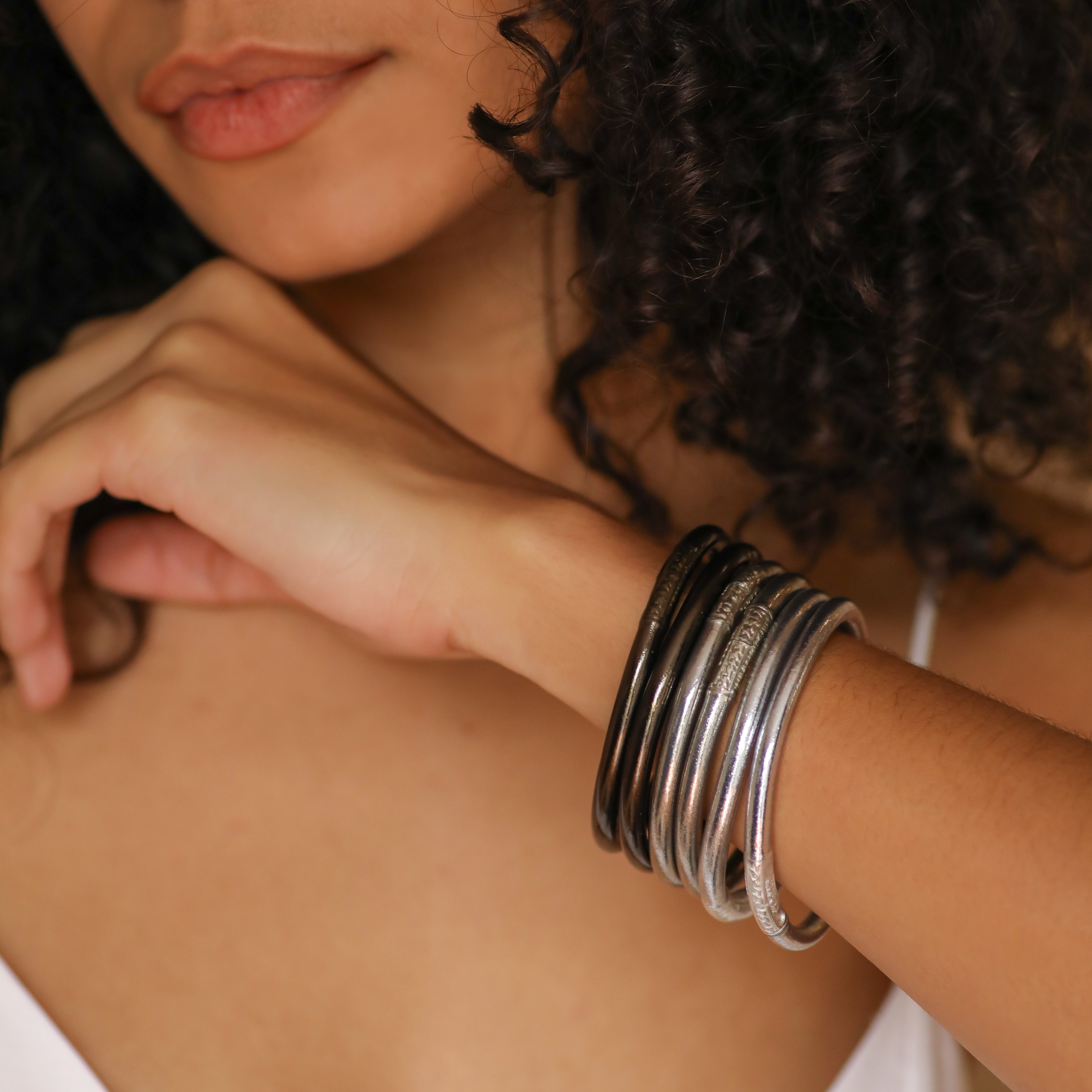 Smoke bangles. Mix and match stackable buddhist bangles.