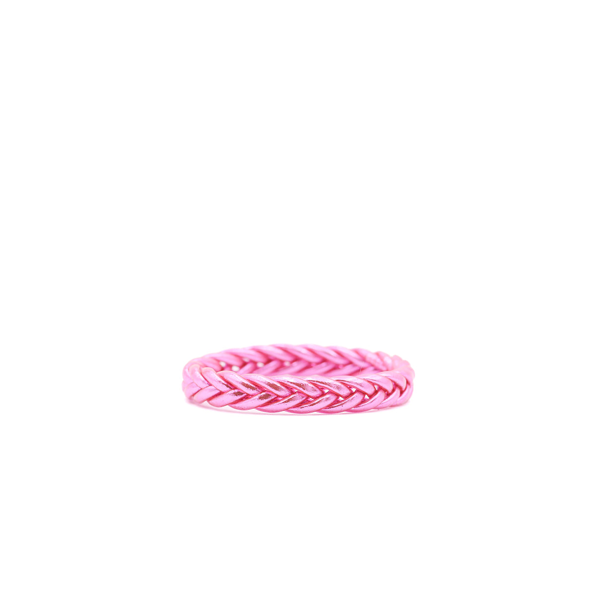 This light pink braided bangle blends soft color with textured design inspired by Buddhist tradition. Handcrafted in Thailand with a 22K gold leaf interior, it reflects intention and calm through subtle detail and form.
